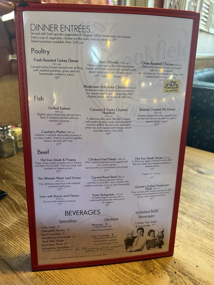 "Introducing the menu at Brookfields Restaurant Sacramento, located at 4343 Madison Ave in Sacramento, offers a plethora of options for their diverse clientele. From vegan and vegetarian choices to hearty dishes like the French Dip and Bleu Cheese Steak Salad, there is something for everyone. Customers rave about the generous portion sizes and fresh ingredients, making it a great spot for any meal - breakfast, brunch, lunch, or dinner. The welcoming staff and casual ambiance create a pleasant dining experience for all. With amenities like outdoor seating, private dining, and free Wi-Fi, Brookfields Restaurant Sacramento is not just a place to eat but a destination for good food and great service."